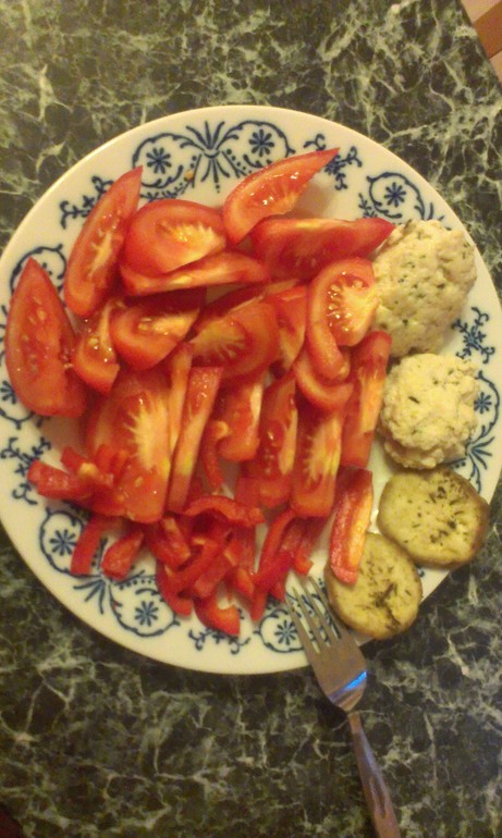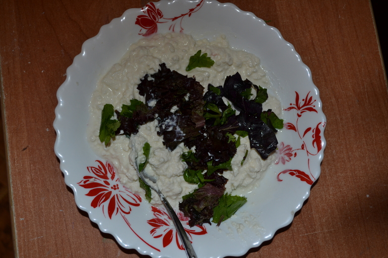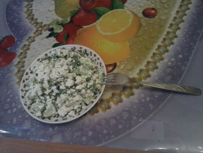 Салат (творог+зелень+чеснок+огурцы+ложка сметаны)