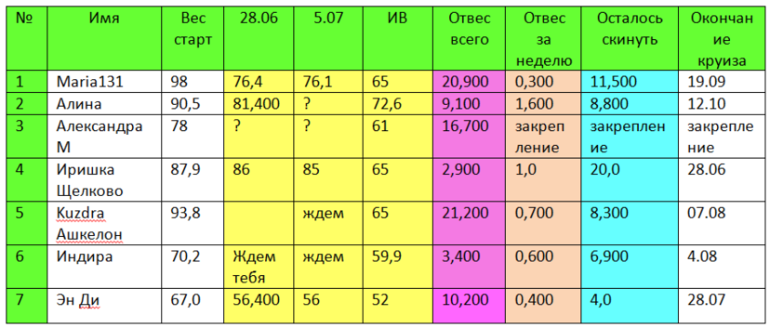 Хочу к вам в таблицу, так сказать для мотивации. На той неделе на дачу уехали и забыла. На диете с 3 июня, начальный вес 100.7 сегодня утром на весах 92.5.