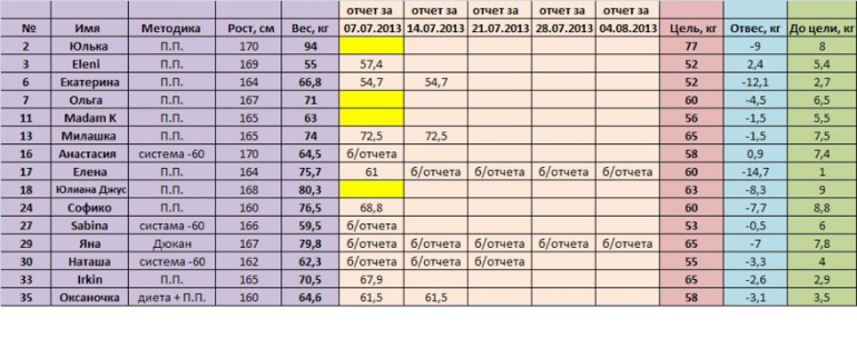 вот наша табличка для отчетиков, всем хороших отвесов!!!