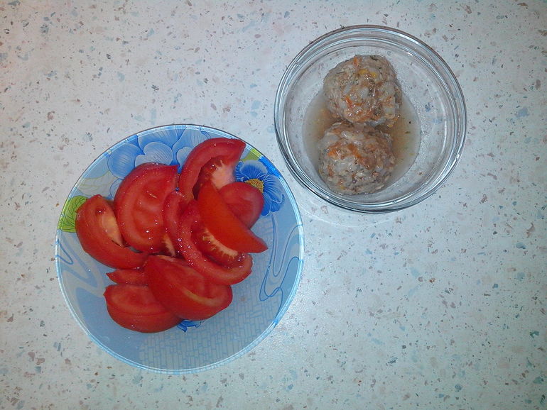 Ужин: тефтели, помидорИ в 21.00 стакан кефира уже не фоткала.