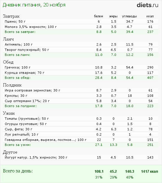 Вот что получилось, что-то у меня калории растут)) Блин, если не делаю табличку, то все слетает у меня, перестаю есть, надо прям с утра делать...