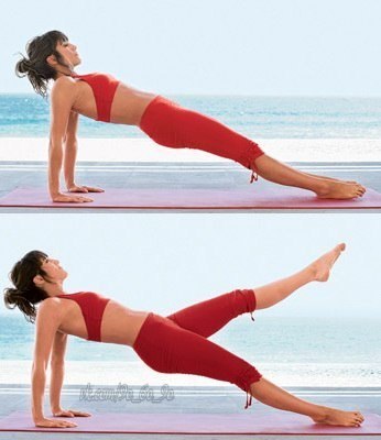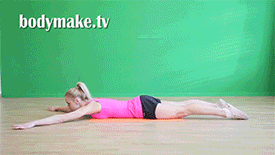 10 одновременных отрывов плеч и ног - 3 подхода (у вас будет выглядеть упражнение несколько иначе, если вы не проф.гимнастка)