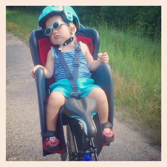 а мой спит,но держится за ручку,я понимаю,что он заснул,когда его голова начинает мотаться и тыкаться мне в поясницу))
