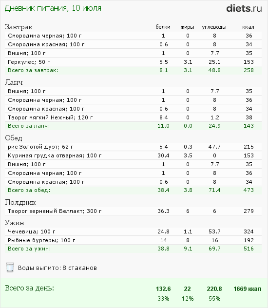 Пищевой дневник (10 июля)