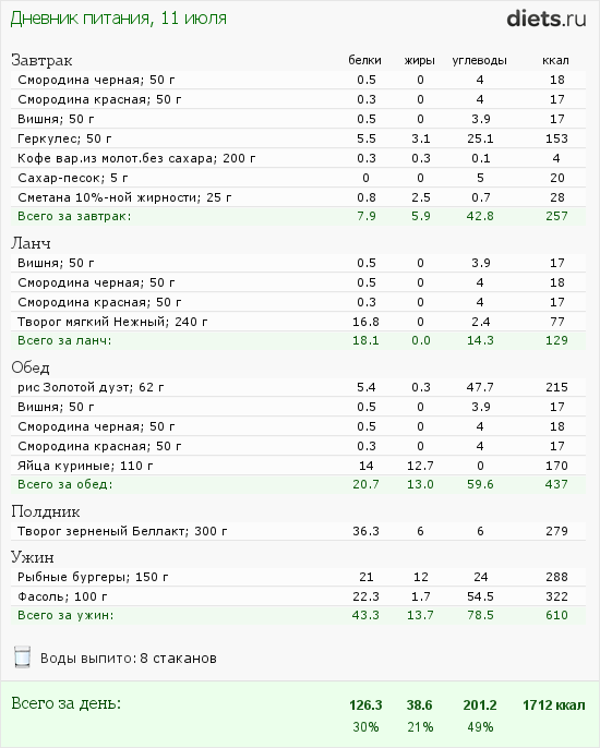 А еще я убедилась, что есть 300 грамм кислых ягод 3 раза в день явно не для меня. Вечером была изжога...((( На завтра тоже ягоды запланировала, как-никак лето на дворе, да и жалко будет выбрасывать, если испортятся. Но порцию уменьшила до 150 грамм. Вот какое меню ждем меня завтра