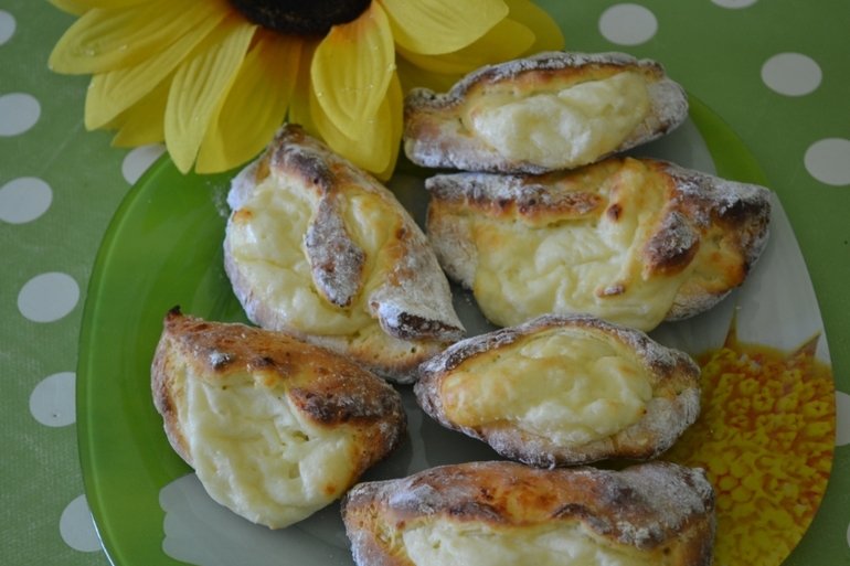 ДВ!Сочники по Дюкану с творогом, от Виктории Соколовой. Этап ЧередованиеТесто:1 яйцо1 ст.л. мягкого творожка 0%1 ч.л. разрыхлителя6 таб. сахзама6 ст.л. сухого обезжиренного молока7 ст.л. кукурузного крахмалаНачинка:150 гр. творога 0% (не мягкого)6 таб. сахзама1 ч.л. кукурузного крахмала1 ч.л. сухого обезжиренного молока1 белокВанилинДля украшения желток.Готовим начинку: Растираем творог с остальными ингредиентами до однородности.Готовим тесто: Взбиваем яйцо с творожком и сахарозаменителем, добавляем разрыхлитель, перемешиваем, и добавляем постепенно молоко с крахмалом. Молоко добавить всё,а крахмал оставить 2-3 ложки для вымешивания. Регулируйте тесто крахмалом. Его может уйти меньше, может больше, смотря какое яйцо (у меня Д0) и творог. Вымешиваем тесто,что бы было не очень крутое, а мягкое. Раскатываем тесто в пласт толщиной около 5 мм и вырезаем из него кружки диаметром 9-10 см. На каждый кружок кладем по 1 ч.л. с верхом начинки и прикрываем свободным концом (не защипываем). Кладем сочники на противень на пергамент, смазываем желтком и выпекаем в разогретой до 200 градусов духовке 20-25 минут до золотистого цвета.Источник Диета Дюкан. Фото Рецептыа грибочки- ножки покрашила плюс лук чеснок туда чуть йогурта плюс соль перец все в шапки и в духовку до готовности