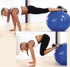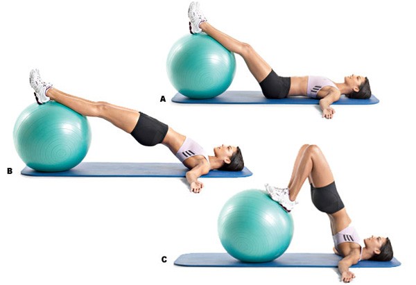 - еще один вариант - лопатки на полу, ноги на фитболе, поднимаем ягодицы,пресс напряжен, на выдохе прикатываем фитбол к попе: