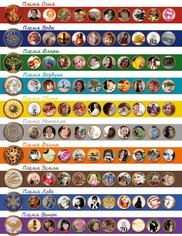 .0 - Племя ВЕТРА 10 - Evgeniya 30 - Кристиночка 60 - Настя 70- Елизавета 80 - Нина Милькова 90 - Алёнка 100 - Малинка |
