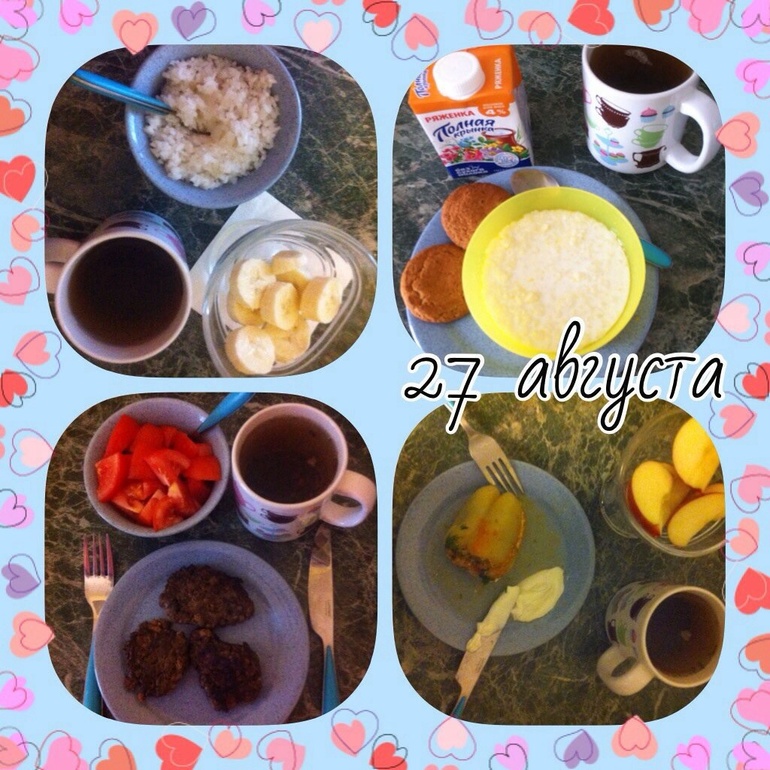 11.30- рисовая каша, черный чай, пол банана