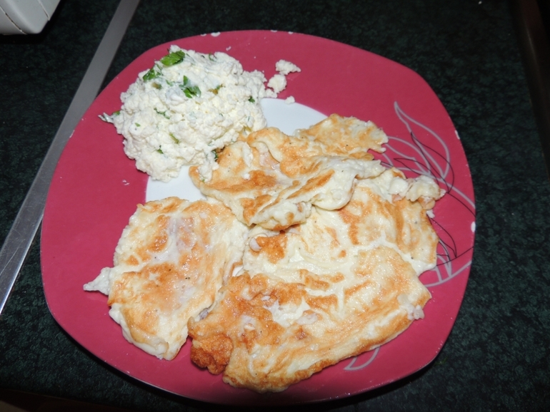 4.ужин-омлет из 3-ех яиц,к нему творог с зеленью,присолила,очень вкусный,еще за день выпила-500мл кефира