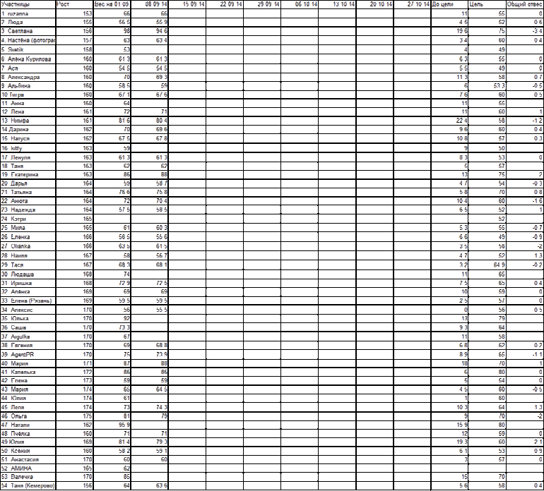 Стройнеем вместе(здесь пишем марафоны,которые уже идут, или предложения о марафоне)Девчат,все молодцы,кто в плюсе или на месте остался-не расстраиваемся!!! Ещё всё впереди! Жду хороших результатов в следующем отчёте! ;)