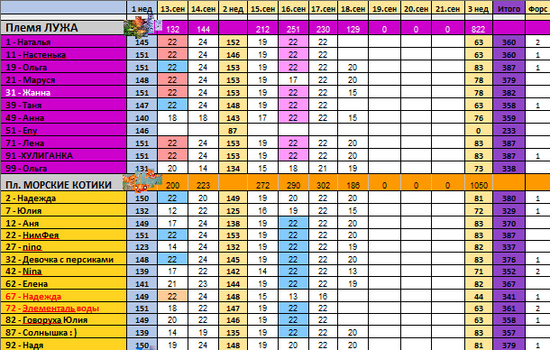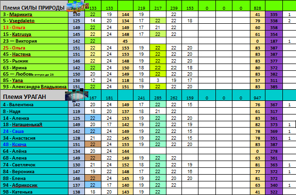 Племя сила природы, 3Пп-12Спорт-5Джокер-0( буду на след недели вас догонять, мне так он понравился:)))) все равно сделаю, гостей провожу , время будет больше, и так отчеты не успеваю писать;(((Уход-1Итого 18