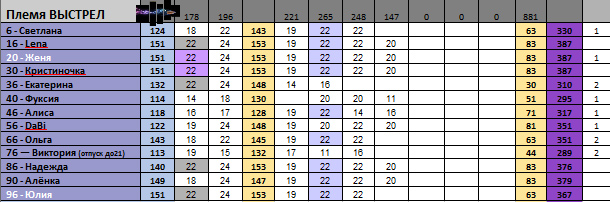 Катя, племя Людей, №95ПП — 12Спорт — 5Джокер — 2Уход — 1Итого: 20