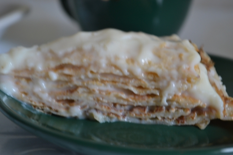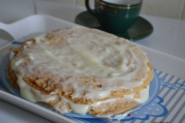 Последний блин пробовала испечь на растительном масле — не пригорел, но он по консистенции не коржик, а прям воздушно-мягкий блин (чуток резиновый), и при перевороте весь собрался в кучку и замялся. Я взяла вместо сыворотки стакан молока 0,5. Но я упорная, сейчас кефир в сметану делаю и жду 0,5 оитра сыворотки. Попробую еще раз.