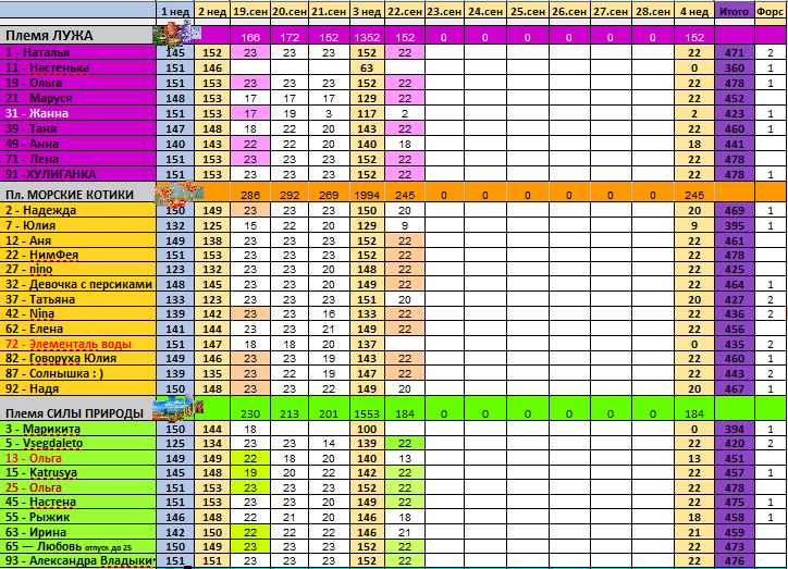 Добрейшего!!! Сегодня КОМАНДНЫЙ ДЕНЬ! Считать его опять будем по среднему дневному результату племени.