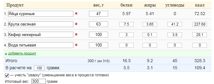 Вот подсчет кбжу