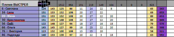 86 Выстрел ПП 12Спотр 5Джокер 2Уход 1Итого 20