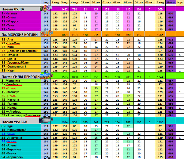Племя Ураган, № 94ПП — 12Спорт — 5 (велотренажер 1 час)Уход — 1 (крем ац)Бонус (сладкого не было) — 2 баллаИТОГО: 20 баллов