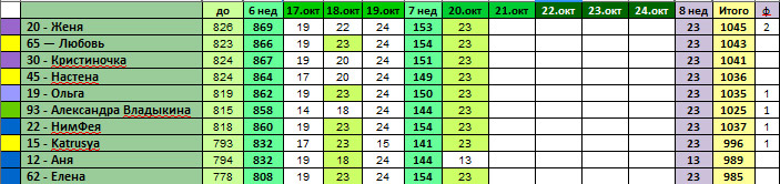 #12Продолжаю болеть, потому беру форс. Сегодня без спорта. Итого: 18Девчонки, выдумщицы))) плакала, пока читала)))Наташ, очень буду ждать марафон!!!