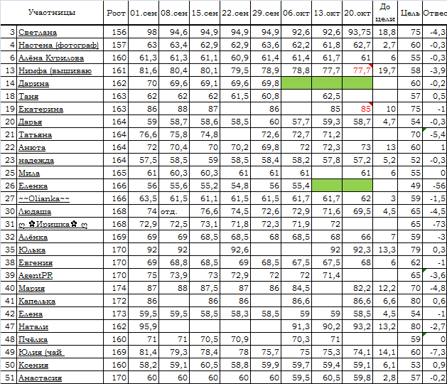 Ксения в Клуб Стройнеющих 11 лет "13 недель осени для стройности!" Итоги 7 недель Стройнеем вместе(здесь пишем марафоны,которые уже идут, или предложения о марафоне) Всем привет, а вот и итоги за наши 7 недель стараний)) Посмотрите еще 20 записей на эту тему Отменить Ответить Missis_Che Вышла на работу в итоге получила 59 кг))51 номер 23.10.2014 Ответить Ксения Ну хорошо пошло -800 гр!! еще пару кг и все)) 23.10.2014 Ответить Нимфа Привет!у меня появились весы. мой вес на сегодня 76,1. Нимфа № 13 22.10.2014 Ответить Ксения записала)) Я прям Вами гордиться начинаю, стабильно вниз!!!! 23.10.2014 Ответить Нимфа я очень стараюсь. 23.10.2014 Ответить Капелька Половина позади. А сдвигов нет(((Где взять сил и терпения(( 22.10.2014 Ответить Ксения Согласна)) У меня вообще 900 гр в плюсе(( 23.10.2014 Ответить Марафон "ПОСЛЕДНИЙ ГЕРОЙ 2"- 1 месяц и 22 дня - Финишный рывок... Марафон "Боди революшен" от Дж Майклз 22.10.14 Чаты Беременных Выберите чат: Январята-2026 Февралята-2026 Мартята-2026 Апрелята-2026 Майчата-2026 Июнята-2026 Июлята-2026 Августята-2026