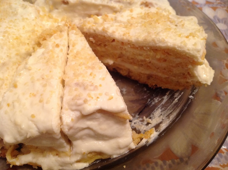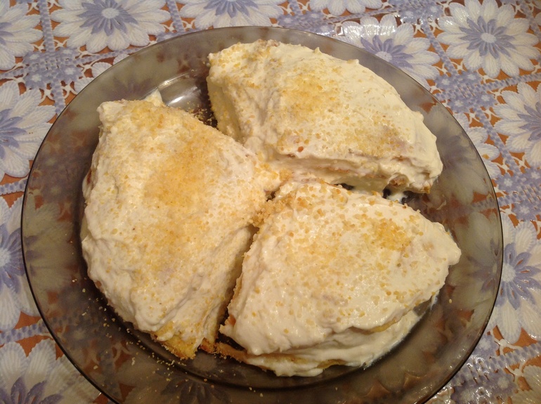 Вроде вкусно, но немного горчил(возможно из за цедры лимона, которой сверху немного посыпала), хотя до этого крем итак был странным на вкус. Сахзам милфорд