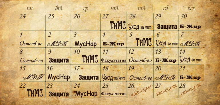 Темным фоном отмечена конечно же СЕССИЯ )))