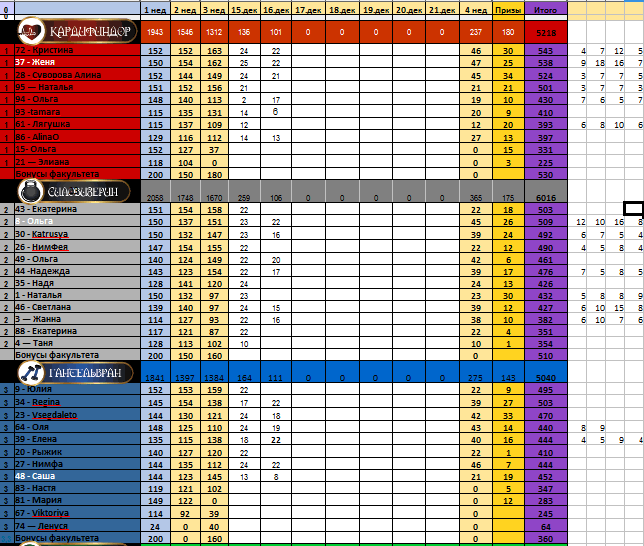 Снейп завален работой, но передает что всем упрямо-настырным студням, кто вчера прислал свои результаты табаты начислено 2 балла в призы...