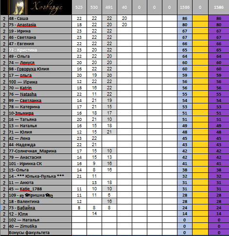 Хогвардс 70ПП — 12 спорт — 1 (только пресс и ногами помахала чуток вчера)джокер — 2 (вчера утром писала)уход — 0Итого: 15 баллов дневник завтра выложу за два дня