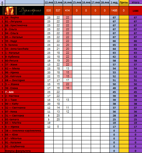 Дурмстранг №90Из баллов в этот день только ПП — 12, т.к. не было света, а потом на несколько дней пропал инет, зато сделала вывод: надо свою спорт. программу скачать, а не онлайн делать. Правда я много пешком гуляла, но все-таки к спорту не буду это относить.Итого: 12