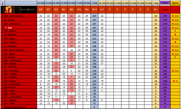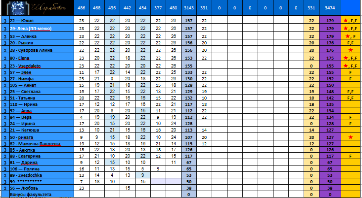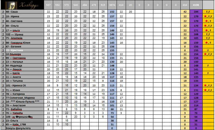 хогвардс 70сорри, как-то я пропустила отчет.ПП -7 (сладкое минус)спорт — 5 плаваниеуход — 1 массаж и ац кремИтого: 13 баллов