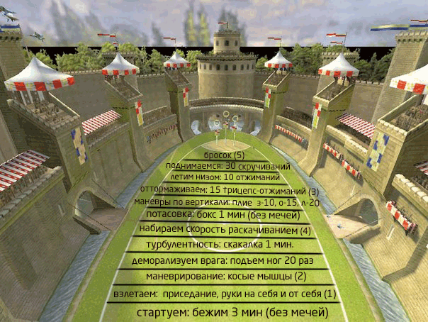 - Вратари мотают круги вокруг колец с кволффом. С каждым кругом уменьшая нанесенный врагом урон на 10 очков. Количество отбитых голов пишут своему ректору.