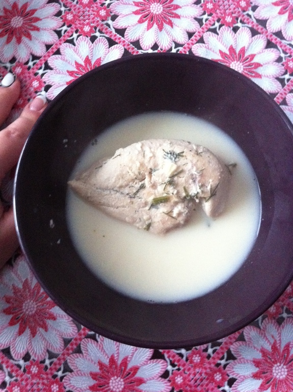 2. Обед: тушёная в молоке куриная грудка, толи я была голодная, но мне очень понравилось, ароматы на всю квартиру. Рецепт прост - я готовила в мультиварке на режиме тушение, без масла, 5-10 минут потомила грудку, а потом залила 0.5% молоком с укропчиком, чесночком и приправами. Хлебала это как супец))