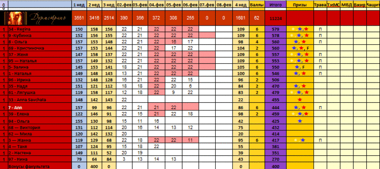 Нет сладкому - 5, 5/6 приемов пищи - 1, БЖУ -2, вода - 1, приготовление - 1, фильтр - 2
