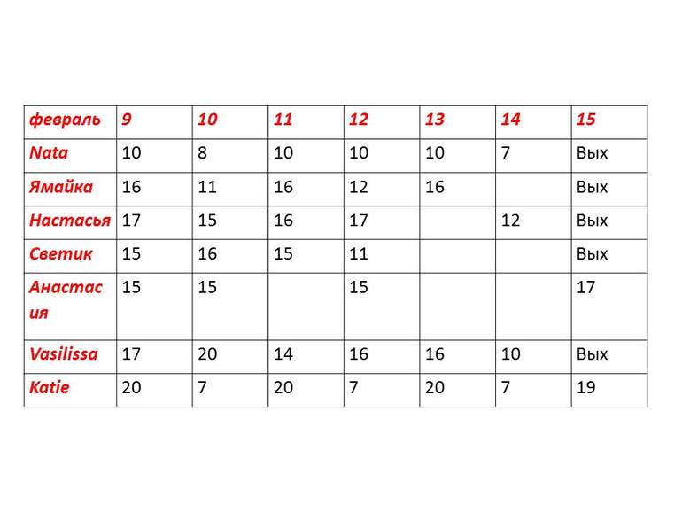 Многие девочки сошли с дистанции. Я старалась все учесть по максимуму, но может что-то забыла, поэтому внимательно отслеживайте свои результаты.