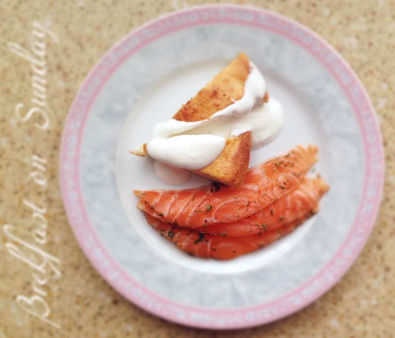 Достали, дали чуть остыть и подаем с греческим йогуртом 4% и слабосоленым лососем.