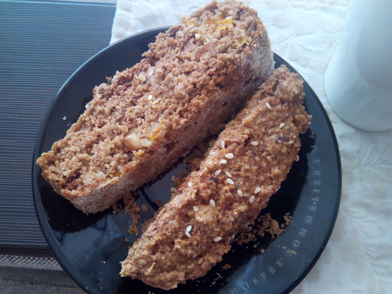 Смазываем форму, посыпаем манкой\сухарями\овсянкой, выкладываем тесто и на 30 мин в разогретую до 180гр духовку. ВАЖНО!!! Разогревайте духовку заранее, овсянка быстро впитывает влагу и тесто густеет.