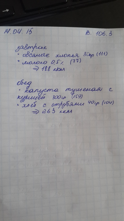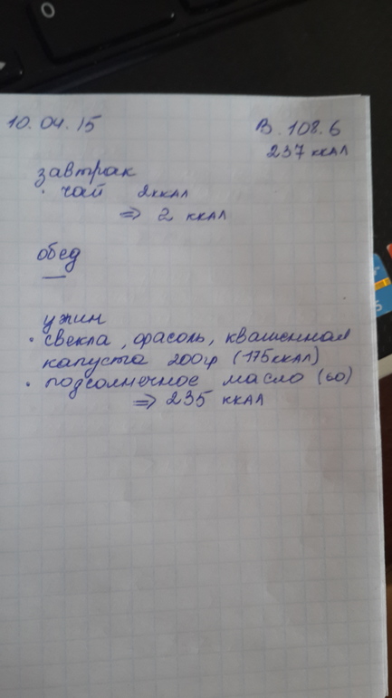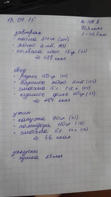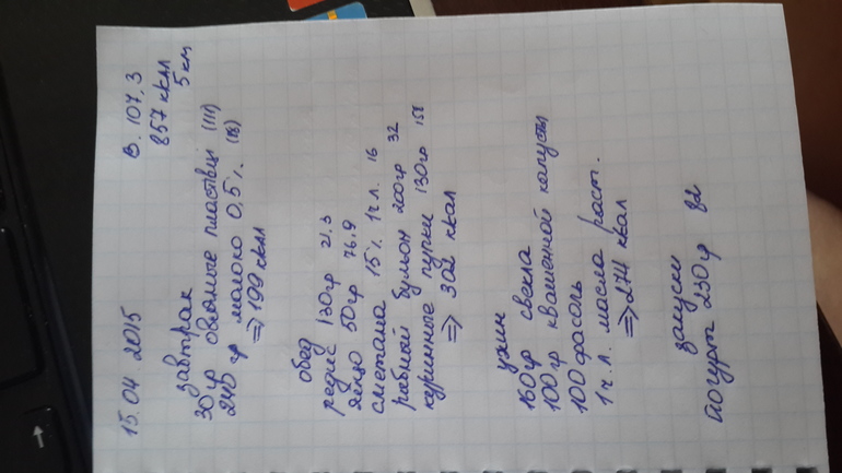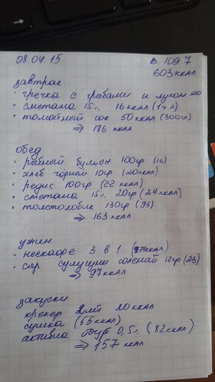 Вообщем худеть я начала с 1 апреля. Даже немного раньше. Вес был 115 сама в ШОКЕ)! Сейчас вес 107,5, а 3 дня назад был 106,5!!! В чем проблема не пойму. Худею путем подсчета ккал. Три года назад уже так худела. Сейчас сброшу фото своего меню. Хочу узнать ваше мнение. Правильно ли я делаю? Нормально ли питания что б похудеть.