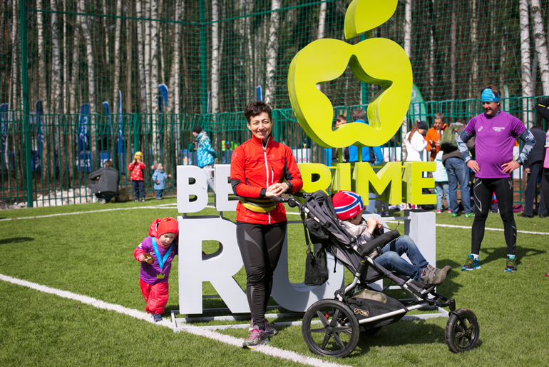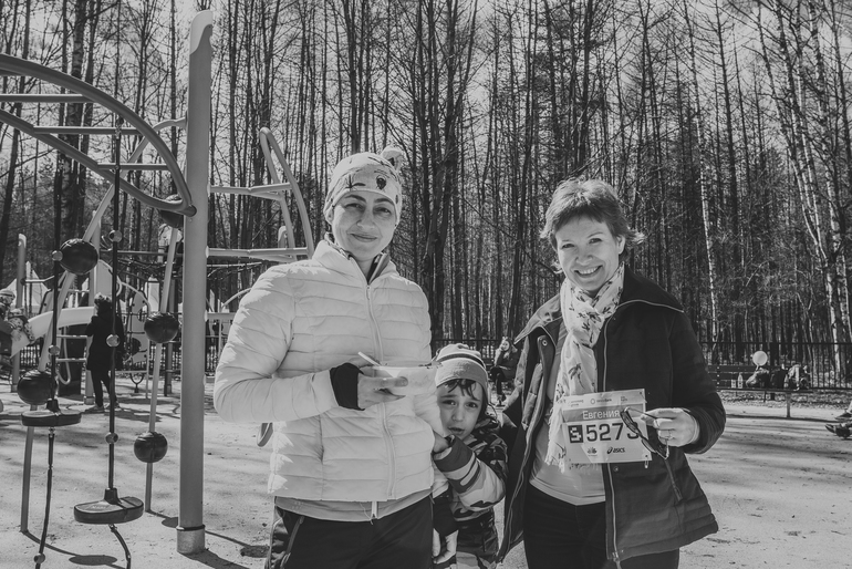 Аурика бежала в группе поддержки с Мишиком, сначала в коляске, ну а на финише уже просто вместе