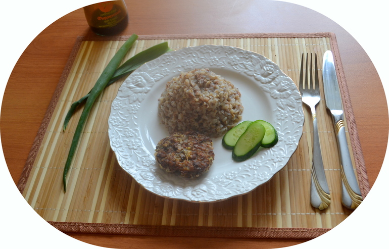 Обед 12.00-гречка(вместо соли соевый соус)+котлета(вместо панировки-овсянка,готовила в духовке на пергаменте)+немного овощей-вкуснятина ![]()
