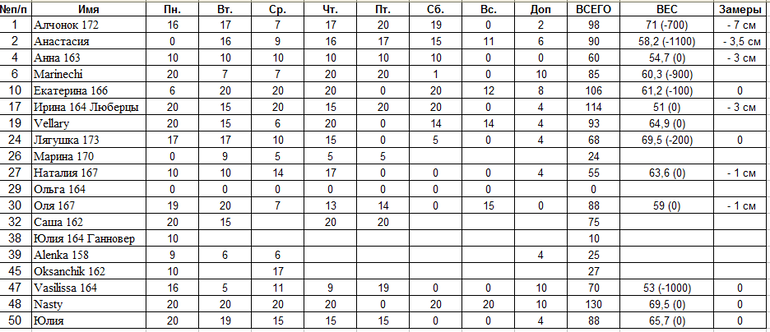 Девочки, прошу в конце этой недели дать свои замеры на финише марафона (пишу для тех, кто не отчитывается по нескольку дней!) для внесения в финальную табличку!