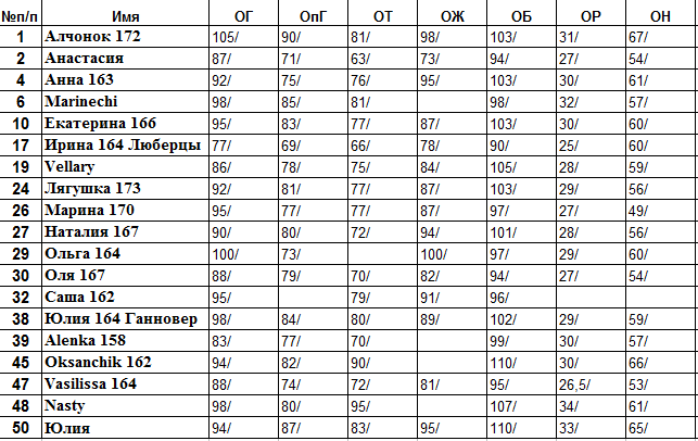 Девочки, в этой табличке ваши замеры В НАЧАЛЕ! Так как вы их сдали мне)) Посмотрите свои пропущенные данные и киньте мне (если знаете и измеряли в самом начале!)