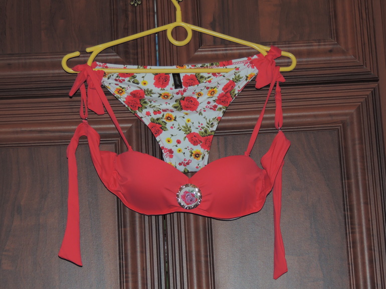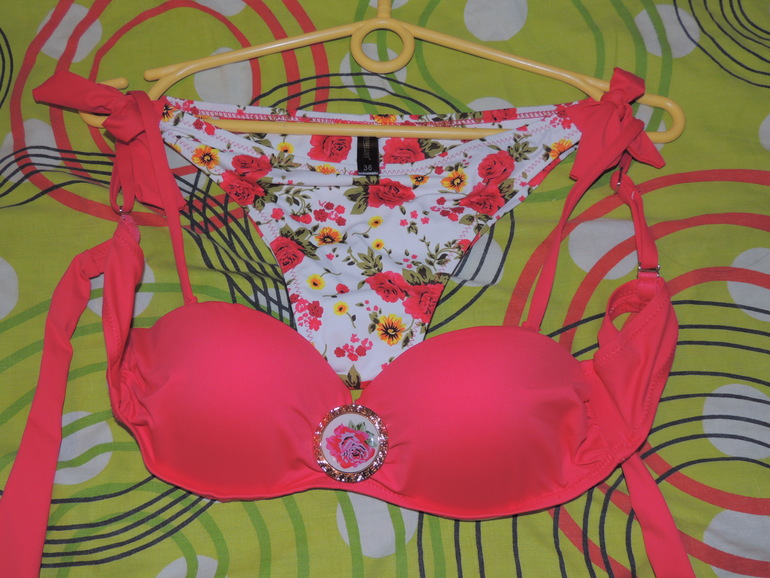 стала в примерочную и давай замерять,моделей куча,все разные,продавец была приятная,подсказывала,не навязчиво так и реально помогала)для меня было важно купить что то подходящее,а не только модное,многие берут модную расцветку,а он не сидит...сколько я померяла и многие,что понравились-то грудь сдавливают,то еще что то.И тут нашелся он,мой))лиф по виду даже не сильно понравился,но когда одела,поняла-мое и продавец сказала то же,грудь то исхудала первее всего...и тяжело сейчас на нее подобрать что то,а лиф был с пушапом,не большим,короче как надо)но трусики,тут меня ждал сюрприз,они знаете,полубикини,то есть пол попы открыто...ох я была в растерянности,но пришлось брать,я такие не носила,зато теперь этот купальник превратился еще и в стимуул- мотивашку))