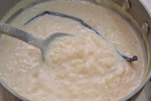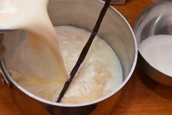 2. Сначала сварите рис. Залейте рис и ванильный стручок молоком.