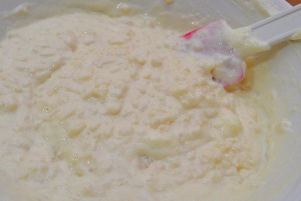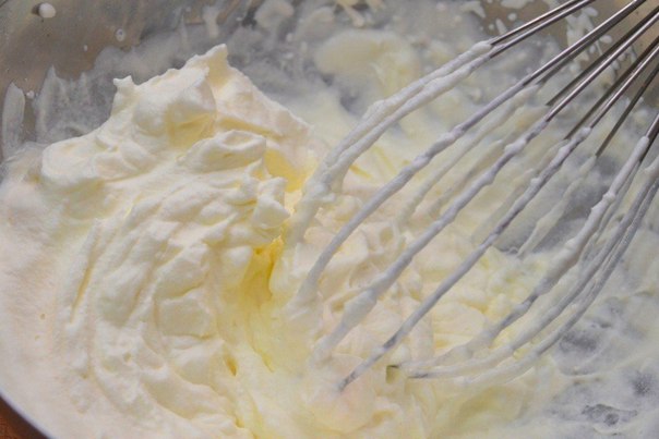 8. Затем аккуратно лопаткой введите взбитые сливки в рис движениями снизу вверх. Масса должна получиться воздушная.