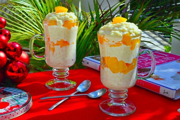 10. Далее выложите пудинг и фрукты слоями в стаканы емкостью 250-300 мл. Подавайте теплым.