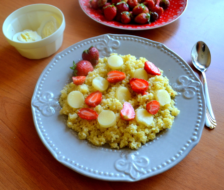 Пшенка с клубникой и сыром(вот это и вправду вкуснотиша,думаю,дело в клубнике))