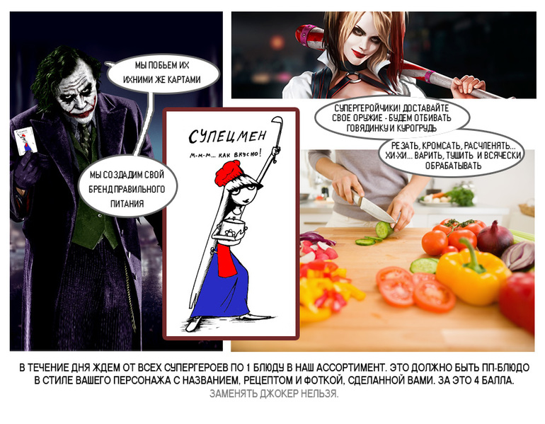 Номер 37, Человек-паук.За 23 июня 15 баллов:питание 7 баллов (минус сладкое, съела Мороженку в парке)спорт 3 — только по парку гуляла, но много и активно (детей долго укладывала и не осилила Джилл вечером)уход 1джокер 4:Ролл-сендвич с говядиной для завтрака или ланча (вкусно, сытно, можно взять с собой на прогулку в парк или на секретную миссию):- Лепешка из пшеничной муки грубого помола (или не пшеничной, можно ПП блины — все, из чего можно сделать ролл, и что не нарушает пункт по мучному и сладкому),- Мягкий творог (у меня Простоквашино 0,1%) или мягкий сыр (чем намазать, чтобы лепешка была не сухая),- Листья салата,- Пара ломтиков говядины (у меня обычная Егорьевская нарезка — 108ккал на 100г),- Вареное яйцо (целое или половинка),- Огурец (у меня 1/4 на сендвич).Режем, заворачиваем и радуемся жизни. Особенно хорошо с горячим кофе =)
