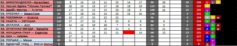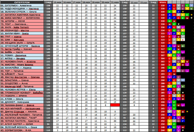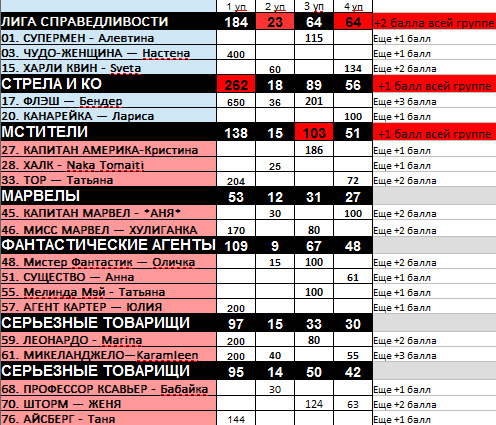 ТАБЛИЦА КРУТИЗНЫ СУПЕРГЕРОЕВ!!! если вы не обнаружили свои баллы, хотя вносили из в гугл=форму, или они не те что вы вносили - напишите Затане (Ann) в личку!!!