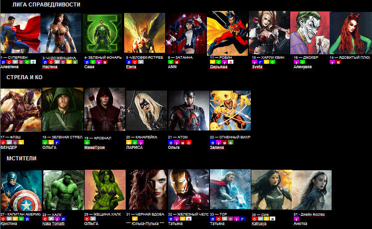ТАБЛИЦА КРУТИЗНЫ СУПЕРГЕРОЕВ!!! если вы не обнаружили свои баллы, хотя вносили из в гугл=форму, или они не те что вы вносили - напишите Затане (Ann) в личку!!!