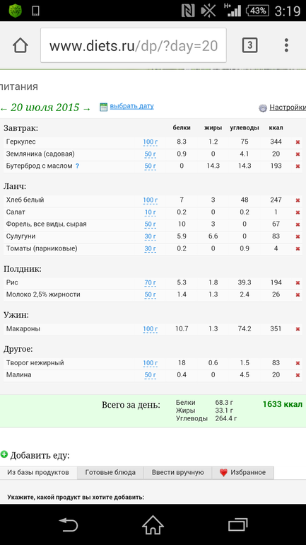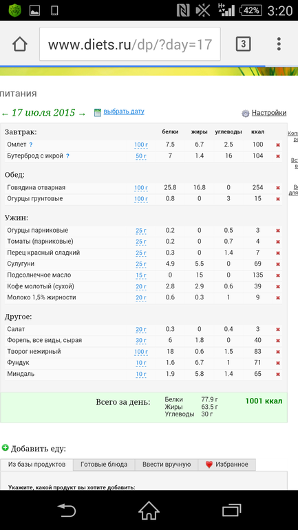 И вот тренер сказал ,что живот уйдет только на пп. При чем сказал что нельзя яблоки (!), морковь, картошку, сахар и мучные изделия .Вот я это все дело и убрала из своего рациона . Пытаюсь вести дневник питания . силовые нагрузки три раза в неделю, минут по 40, пока мышцы не привыкнут . После занятий ужасно хочется мяса ! Ну хочется ,значит ем. Вроде прочитала ,что это нормально . Посчитала ,что для меня нужно 1500 калорий ,что бы поддержать вес и 1200 что бы сбросить три кг. В целом меня устраивают мои 53 кг, но хотелось бы что бы это был вес мышц. Мне нужно сбрасывать все же или нет ? То есть питаться на 1500 калорий или на 1200, а когда жир уйдет ,то добавлять ? Ну и что то я не добираю чего то ,мне кажется . Посоветуйте ,пожалуйста ,что добавить ?